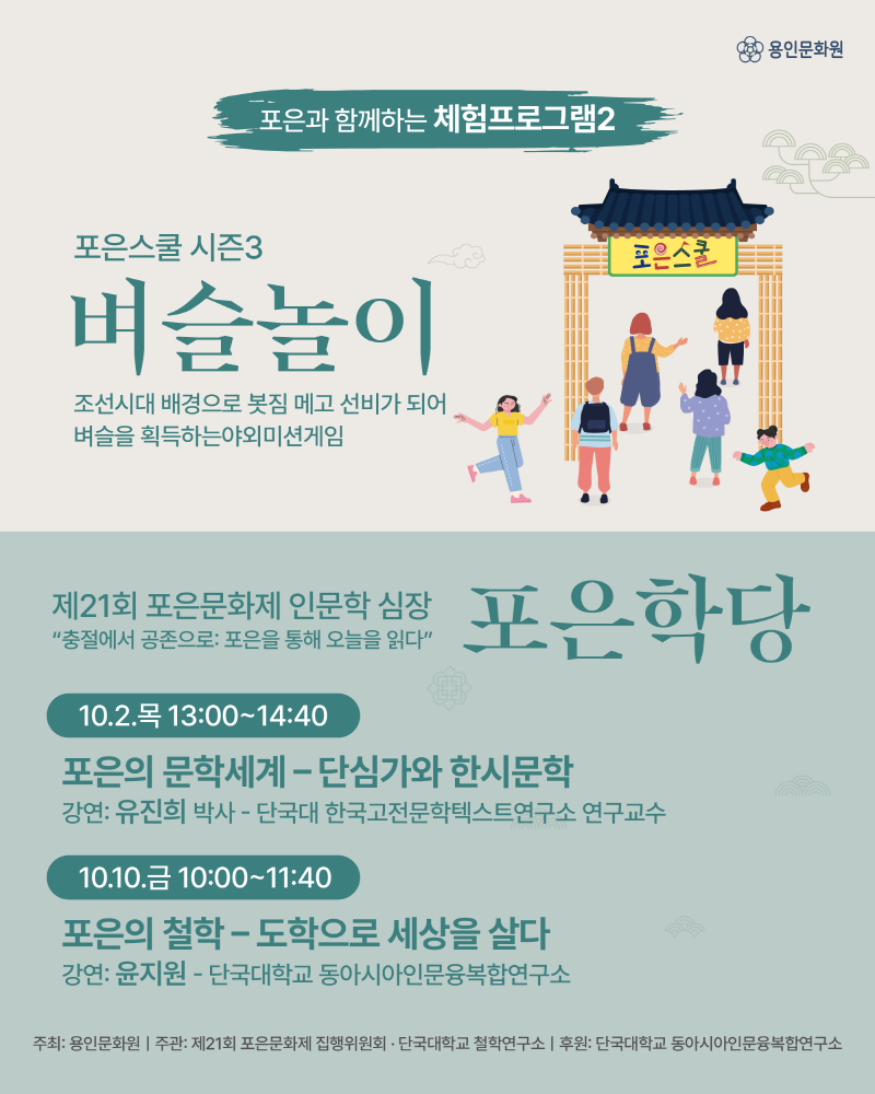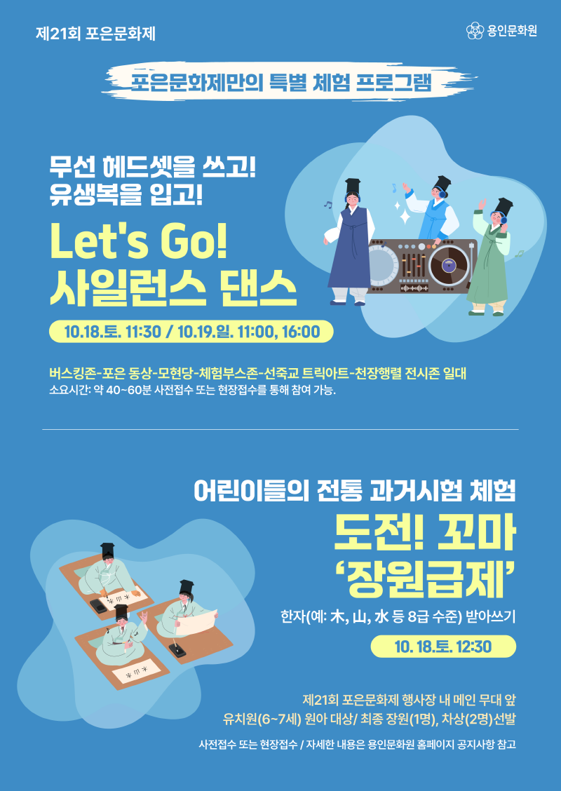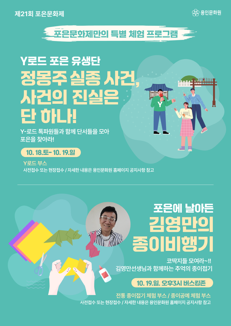 천장행렬, 포은문화제 기념식, 사일런트 댄스, 어린이 백일장, 골든벨, 종이접기, 용인시 민속예술제, 청소년 민속예술 공연, 문화원 공연팀(한국무용, 합창단, 취타대)